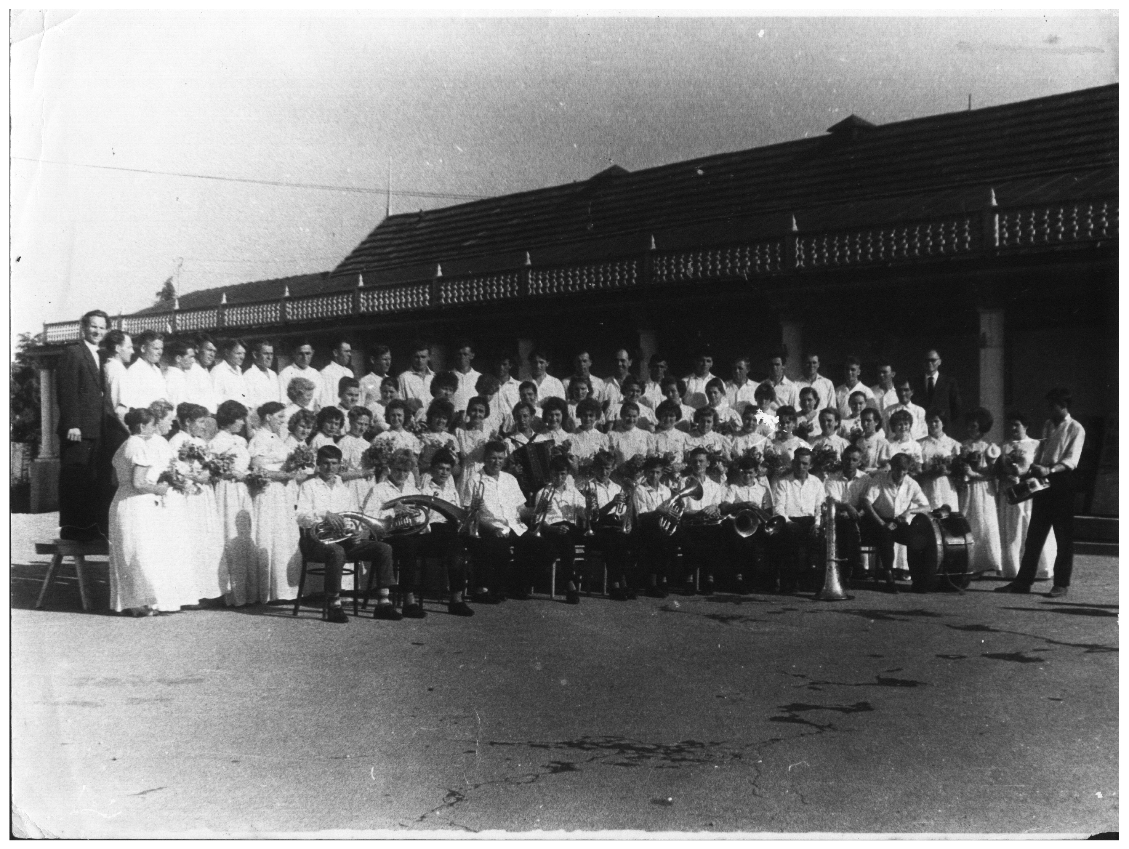 Стиляга. Летний кинотеатр. Концерт. То же лето. 1966 год. Кроме клуба в нашем совхозе есть ещё летний кинотеатр. К клубу с торца углом примыкает еще одно здание. В первом слева помещении находится столовая для рабочих, где все обедают. Дальше ещё две комнаты, соединённые дверью, в которых проходят репетиции хора, духового и эстрадного оркестра, иногда танцы прочие небольшие мероприятия и библиотека. А за этим зданием как раз и расположен летний кинотеатр. Вход в него с улицы через калитку в больших воротах. Здесь площадка для ожидающих сеанса зрителей и прямоугольное здание с плоской крышей – кинобудка. Я не случайно это описываю. Эти подробности нужны для понимания моего рассказа. Рядом с кинобудкой и забором входная дверь, а за ней большая открытая площадка со скамейками для зрителей, а впереди сцена с экраном в задней части под большим навесом. Зрителей сюда помещается больше, чем в клуб и свежий воздух в качестве дополнения. Здесь по вечерам показывают кинофильмы. Иногда бывают собрания и концерты. Для нас, пацанов, очень удобное место. У кинобудки плоская крыша с невысокими бортиками и мы сюда лазим смотреть кино. Попадаем туда через крышу столовой, к которой она примыкает. Иногда киномеханик нас оттуда гоняет, но не часто, даже если фильм «Дети до 16 лет не допускаются!» Об этом месте знаем только мы, те кто живёт рядом — на нашей горке. А сегодня в совхоз приехал давать концерт какой-то эстрадный оркестр из другого города. У них гастроли и они выступают в нашем летнем кинотеатре. Вход только по билетам, каждый стоит рубль пятьдесят. Это очень дорого. Нам не по карману. Но у нас есть крыша кинобудки. И мы уже здесь. Нас собралось больше десяти человек, мы устроились как могли, крыша тёплая за день нагрелась на солнце и нам вполне комфортно. Начался концерт. Для нашего неизбалованного зрителя очень даже неплохой. Электрогитара, контрабас, несколько труб, аккордеон и ударник. Играли и пели в основном известные эстрадные песни и зрители активно аплодировали. Некоторые из нас уже понемногу пели и играли на гитаре, концерт нам очень нравился. Потом они заиграли и запели песню на английском языке в ритме твист. Мы сидим, смотрим и слушаем, и тут один пацан зовёт нас на противоположный край кинобудки, машет руками и почти кричит: «Скорей сюда!» и показывает вниз. Мы подошли к краю и заглянули вниз. А там такое… Взрослый парень одетый как стиляга в одиночестве танцует твист. На нём зеленоватый клетчатый расстёгнутый пиджак, длинный галстук, узкие брюки и остроносые туфли. О! Как он самозабвенно извивался! То на одной ноге, то на другой, то на обоих… Он откидывался назад и почти ложился на спину… И всё в полном одиночестве. Я видел, как у нас на танцах танцевали этот танец. Двигаются зигзагами на полусогнутых ногах, и не более того. А это — настоящий танец. В моём понимании профессиональный. Я даже не представлял, что можно так красиво танцевать твист. До этого я видел его только в киножурнале, где высмеивали стиляг и объясняли, что это чуждо советскому человеку и нам с ними не по пути. Мы смотрели на него сверху, а он нас даже не заметил, хотя и поворачивал лицо вверх в нашу сторону. Ему было хорошо… Песня закончилась и он пошёл в зал. А мы сидим на крыше и перевариваем увиденное.