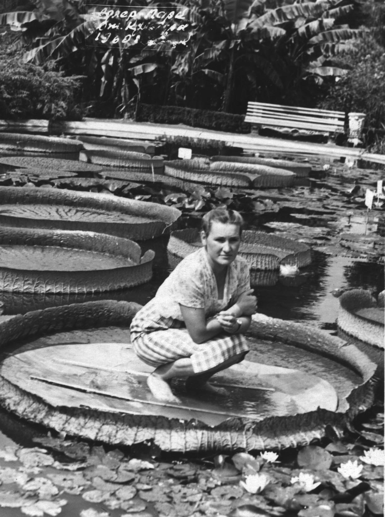 Озеро с лилиями. Лист-сковородка. Лето. 1959 год. Воскресенье. Сегодня утром к папе пришёл его знакомый фотограф из парка – дядя Женя. Он встречает экскурсии, проходит с ними по маршруту и фотографирует отдыхающих в разных красивых местах парка. На следующий день он отдаёт фотографии экскурсоводу.