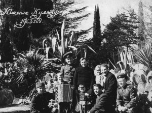 …Встретили меня довольно прохладно. Компания уже сложилась, и чужаки не приветствуются. Уже несколько дней ко мне приглядывались и вот теперь решили прощупать. Я вышел погулять и оказался один в парке. Дом совсем рядом, но меня не видно, да особо никто и не смотрит… Тогда родители за детей сильно не беспокоились, шёл 1957 год, место у нас тихое и никто не хулиганит, максимум, что может случиться, это разбитая коленка или локоть. Я стою на площадке в верхней части парка. Сюда сходятся несколько дорожек, а вокруг стоят лавочки и растут большие раскидистые платаны. Тепло и уютно. Меня окружили и начали задавать вопросы — кто я, сколько мне лет и так далее. Мои родители уже давно работают в совхозе с тем же названием, что и парк — «Южные Культуры», вернее наоборот — парк носит название совхоза. Просто мы жили в другом месте, а теперь нам дали квартиру здесь. Мой папа — художник, он занимается разными оформительскими работами в совхозе. Всё, что написано, нарисовано и сделано красиво — это дело его рук. Все таблички, указатели, плакаты, афиши и прочее делает он. Его все знают, уважают и любят. Он держит голубей на чердаке веранды, дома канареек и маленьких попугайчиков, а ещё рыбок в аквариуме. Мама работает воспитательницей в детском саду. Поэтому она тоже знакома со всеми и все знакомы с ней. И мама и папа хорошо знают родителей всех присутствующих детей. Теперь пришло время познакомиться и им со мной. После расспросов мне без лишних слов предложили побороться. Мальчик по имени Толик и я зашли на полянку, остальные нас окружили. Ростом и комплекцией мы примерно одинаковые, но я чужак и немного боюсь. Толик хватает меня за руки и тянет вниз, я упираюсь, и мы начинаем кружиться, остальные подначивают и шумят. Топчемся и толкаемся, потом схватываемся в обнимку и валимся на траву. Катаемся по полянке с переменным успехом, а потом я оказываюсь сверху и сидя на противнике, прижимаю его к земле. Старшие ребята нас разнимают и на этом испытание окончено. Мы пожимаем руки и мне предлагают пойти погулять по парку. Я бегу домой и спрашиваю разрешения. Папа выходит со мной и поручает Вите старшему за мной приглядывать. Он дружит с его отцом и легко отпускает меня гулять. До этого мы жили в посёлке на берегу реки Мзымта, и в парке я бывал только несколько раз на прогулке с родителями, ребята же знают его вдоль и поперёк. Мы идём по дорожке к месту, которое местные называют «мексиканская горка». Это совсем недалеко, но впечатление незабываемое.