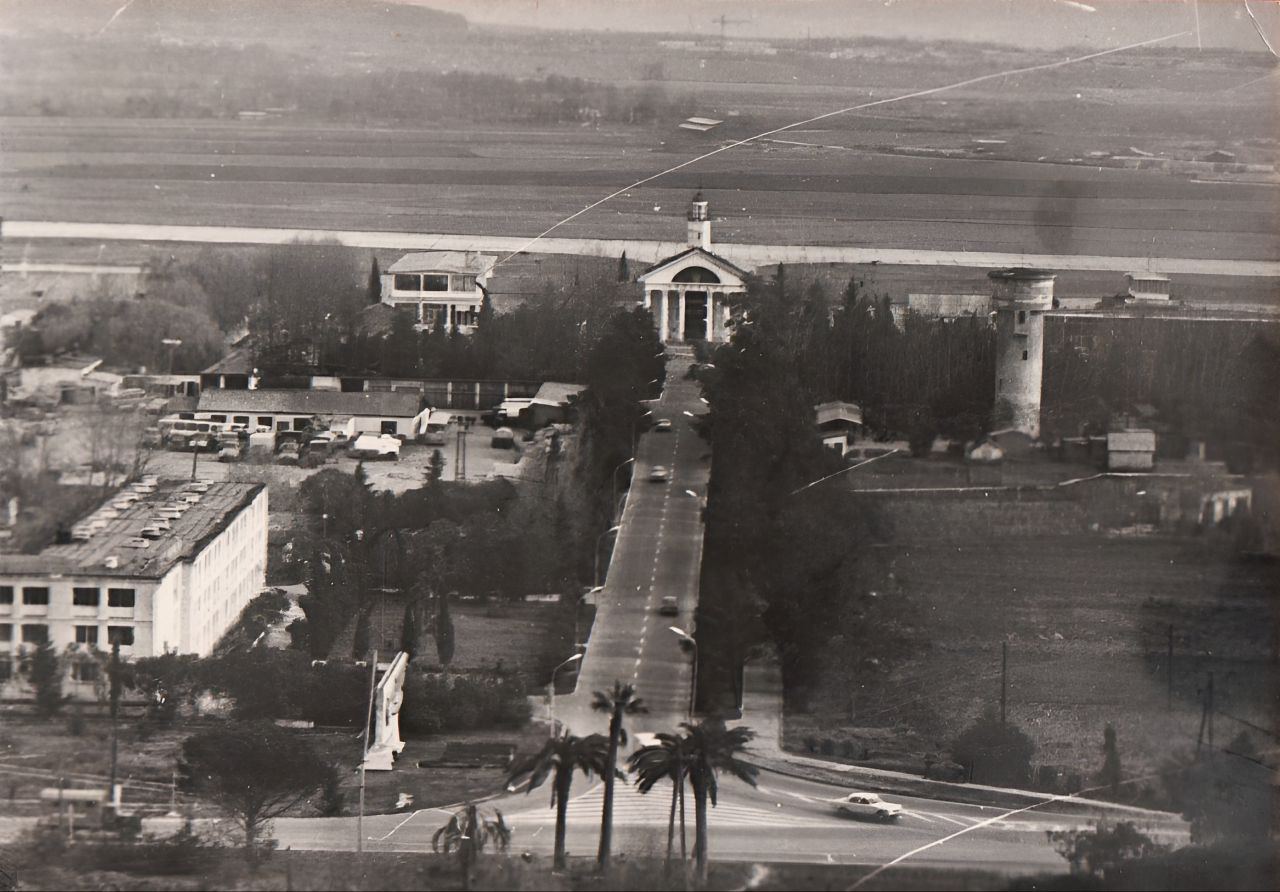 Аэропорт. Водонапорная башня. Мозаика. Лето. Каникулы. 1965 год. Мы — я и мой друг Сашка, в аэропорту Адлера на работе у моего папы. Он нас взял с собой специально для помощи ему и его напарнику дяде Лёше. У них очень ответственное дело – художественное оформление водонапорной башни. Она расположена недалеко от входа в здание аэропорта и совсем-совсем рядом с их мастерской. Практически она располагается под башней, метров двадцать пять, не больше. Сама башня – это высокое кирпичное строение в виде цилиндра. Его верхняя часть толще, чем нижняя. Внизу его дверь, а внутри лестница наверх. Но туда нас не пускают. Сейчас вокруг всей башни сделаны строительные леса из досок, её ремонтируют. Папа нарисовал эту башню на большом листе бумаги и раскрасил её поверхность рисунками самолётов. Так она должна выглядеть после ремонта. Все рисунки делаются из мозаики. Это такие маленькие квадратные плиточки то ли из глины, то ли из фарфора, но очень яркие и гладкие с одной стороны. А обратная сторона у них обычная, шершавая и коричневая. Папа и дядя Лёша нарисовали куски общего большого рисунка на листах бумаги и раскрасили их, как в детских раскрасках. Их по очереди кладут на большой стол и прямо на них раскладывают цветные плиточки нужного цвета, как на раскраске. Недалеко от стола стоят ящики с плиточками, в каждом ящике свой цвет. Для нас на стол отдельно положили лист раскраски, и мы тоже работаем – раскладываем плиточки. Сначала это было весело, мы хватали горсть мозаики и быстро бежали к столу, раскладывали её на рисунок. Но скоро стали делать это не спеша. Каждая плитка должна быть на своём месте по цвету и плотно прижата к соседним, а там, где она попадала на линию, её раскалывали и соединяли с кусочком другой. Нам поручили раскладывать только целые, а на месте линий оставлять пустое место. Готовые листы с полностью заполненным рисунком густо намазывают клеем и накладывают лист плотной бумаги. Сверху краской крупно рисуют номер. После высыхания клея этот лист переносят под навес к другим таким же. Когда накапливается сколько-то готовых листов, рабочие намазывают цементный раствор на стену башни и прилепляют на неё лист с мозаикой вместе с бумагой. Вся поверхность баши окружена мелкой металлической сеткой, это чтобы цемент крепче держался и не отвалился.